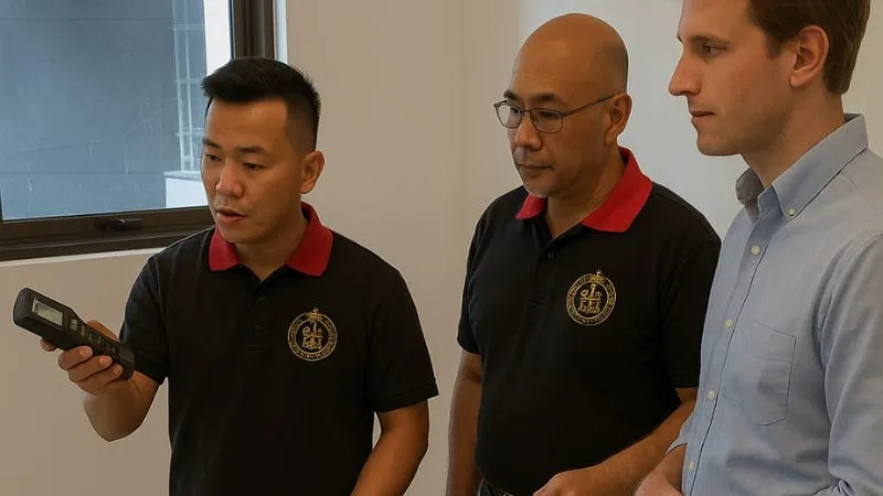 透過感測儀器量測牆面內部的含水量,判斷是否存在漏水、未乾水泥或濕氣滯留問題